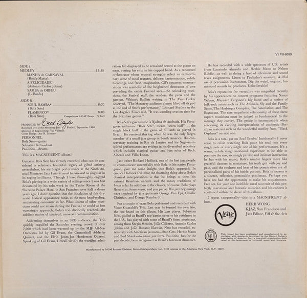 Bola Sete - Bola Sete At The Monterey Jazz Festival (LP, Album, Gat)