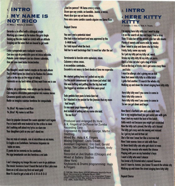 Track 17 © 1992 Mi Palo Music / Dos Hermanos / Mo' Ritmo Music (ASCAP). Contains a sample of "The Infamous Date Rape" performed by [a3268 courtesy of Jive Records and courtesy of Zomba Enterprises Inc. (ASCAP). [a1845084 appears courtesy of WTG Records. Recorded and mixed at Image Studios.