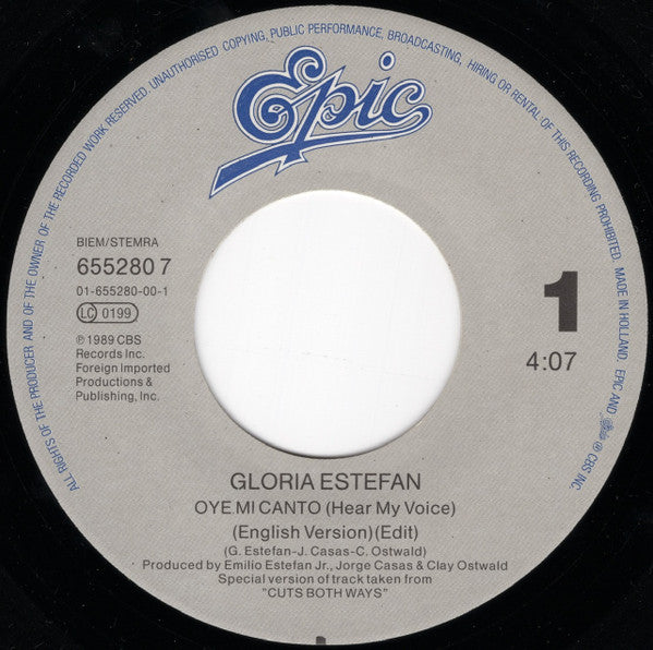 Gloria Estefan - Oye Mi Canto (Hear My Voice) (7", Single)