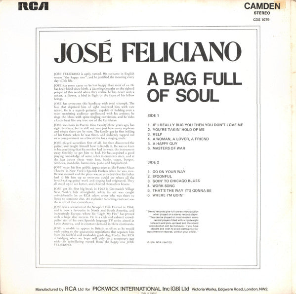 José Feliciano - A Bag Full Of Soul (LP, Album)