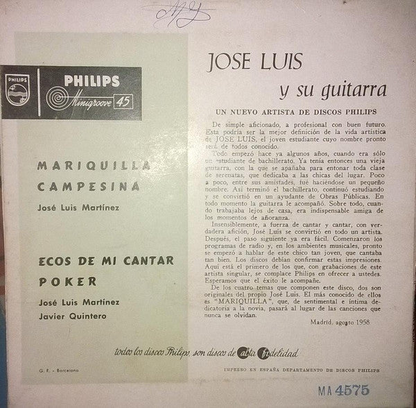 José Luis Y Su Guitarra - Mariquilla (7", EP, Blu)