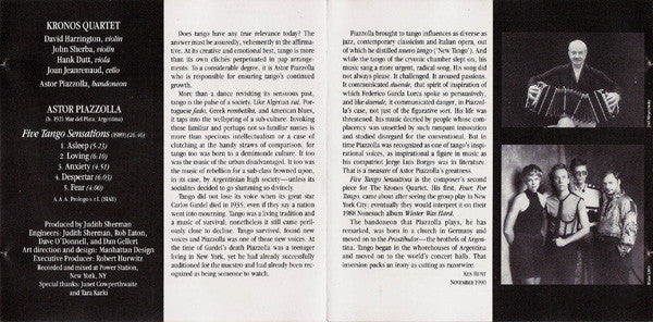 Kronos Quartet With Astor Piazzolla - Five Tango Sensations (CD, MiniAlbum)