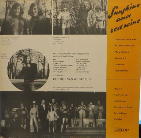 Back picture informs us that Orkest The Court (with Marc Verveer & lots of others mentioned..)will play every saturday evening & sunday afternoon at Dancing Het Hof van Westerlo (probably in Westerlo, Flanders, Belgium).