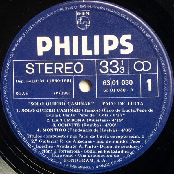 Paco De Lucía - Solo Quiero Caminar (LP, Album, Gat)