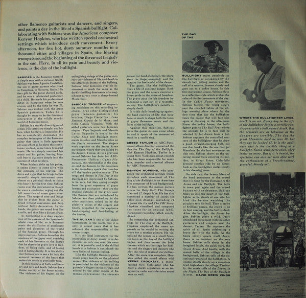 All the photographs on both the covers and the inside pages were taken in spain by Vincent Kehoe, who is preparing a picture-and-text documentary for publication by Hastings House. The liner design and annotation are by David Drew Zingg. Front and back cover design is by Matt Schutz. Printed in U.S.A. A product of the Am-Par Record Corporation.