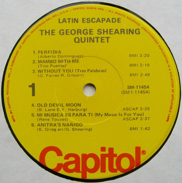 The George Shearing Quintet - Latin Escapade (LP, Album, RE)