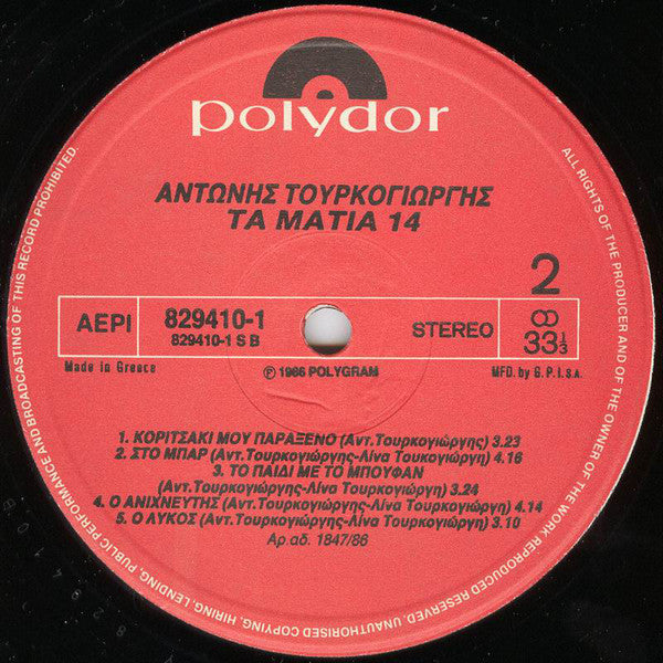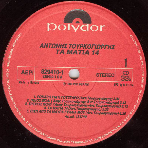 Αντώνης Τουρκογιώργης - Τα Μάτια 14 (LP, Album)