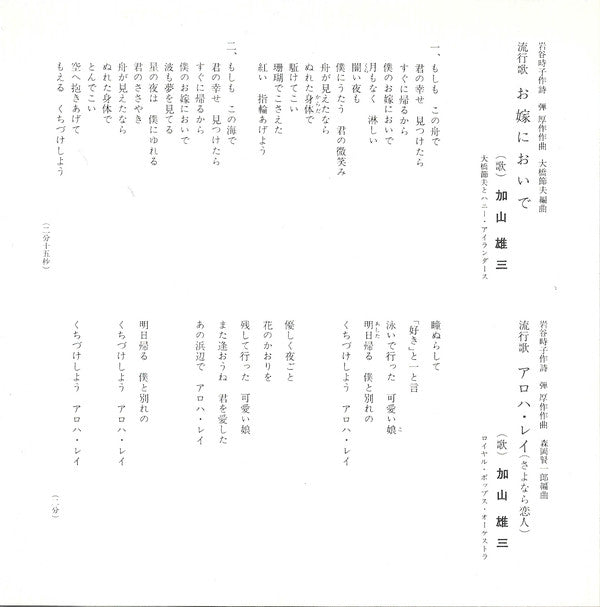 加山雄三 = 加山雄三 - お嫁においで / アロハ・レイ (7", Single)