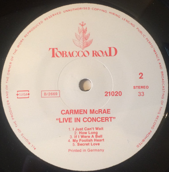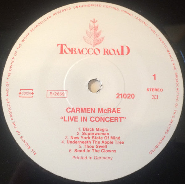 Carmen McRae - Live In Concert (LP)