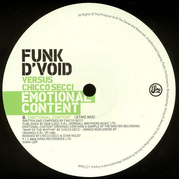 Funk D'Void Versus Chicco Secci - Emotional Content (12")
