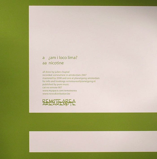 All done by Julien Chaptal. Recorded somewhere in Amsterdam, 2007. Mastered at Planetgong, Amsterdam. Published by Pure Music.