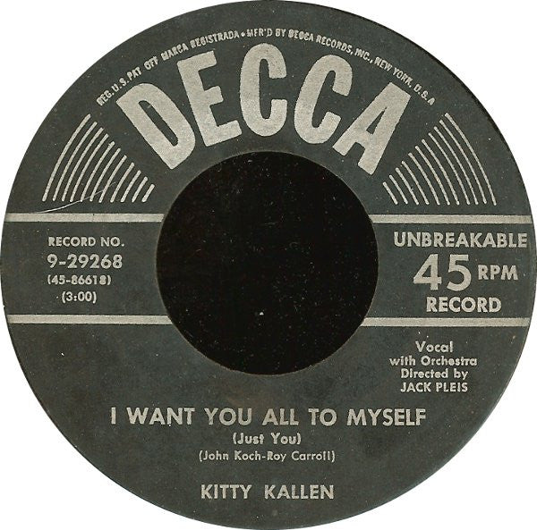 Kitty Kallen - I Want You All To Myself (Just You) (7", Ric)