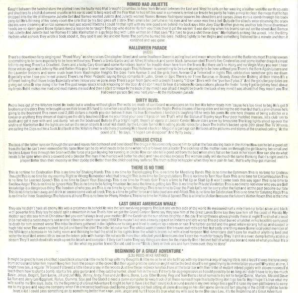 Includes printed inner sleeve with lyrics. Some copies issued with a 12" 4-panel insert with the lyrics translated into Italian, German and French.