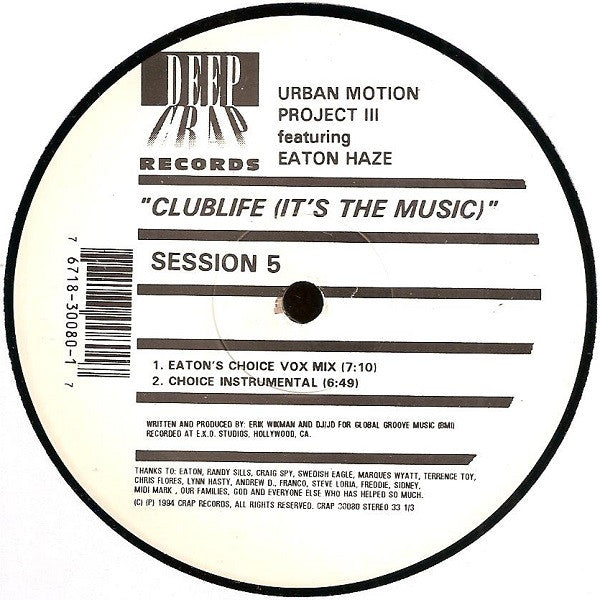 The Urban Motion Project - Clublife (It's The Music) (12")
