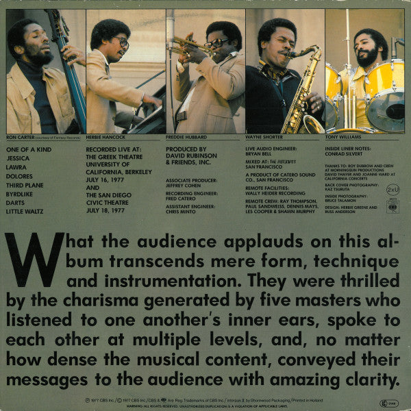 Recorded live at: The Greek Theatre University of California, Berkeley, July 16, 1977 and The San Diego Civic Theatre, July 18, 1977