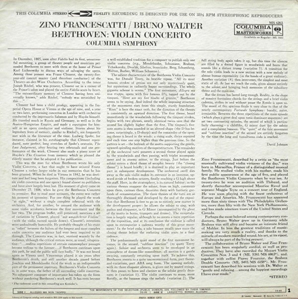 Zino Francescatti ‧ Bruno Walter, Ludwig van Beethoven, Columbia Symphony Orchestra - Violin Concerto (LP, RP)