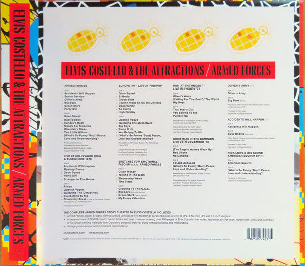 Armed Forces album, b-sides, demos and 23 unreleased live recordings across 9 pieces of vinyl (3 LP's, 3 10-inch LP's and 3 7 inch singles)