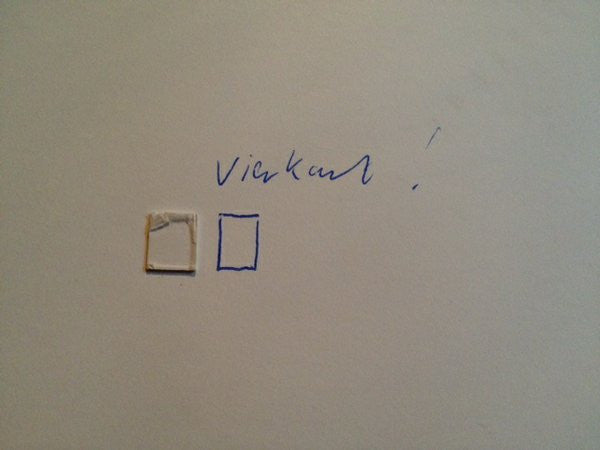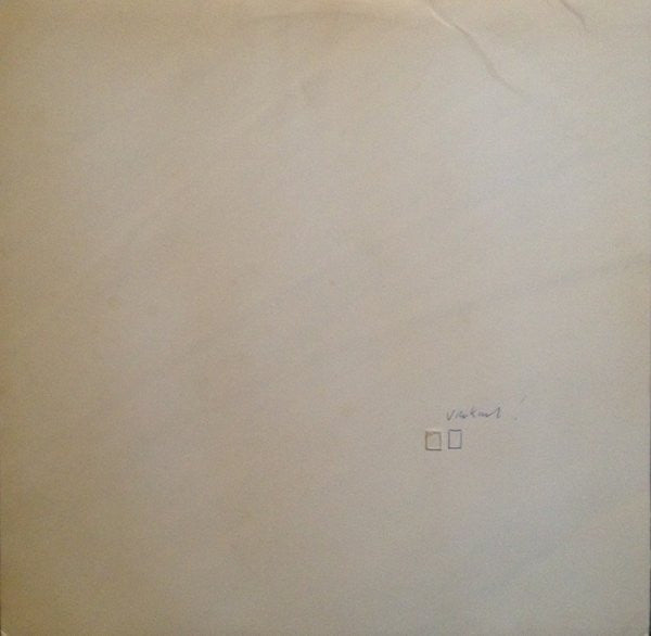 Front cover is plain white with individual handmade art by Bennink. Examples include: tiny square glued on the sleeve with next to it a square drawn on the sleeve, rabbit drawing, sticker with handwritten title, etc.)