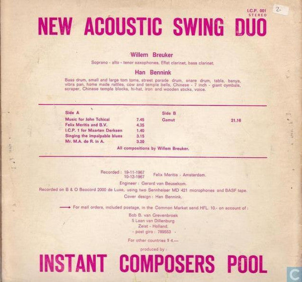 Han Bennink / Willem Breuker - New Acoustic Swing Duo (LP, Album, pin)