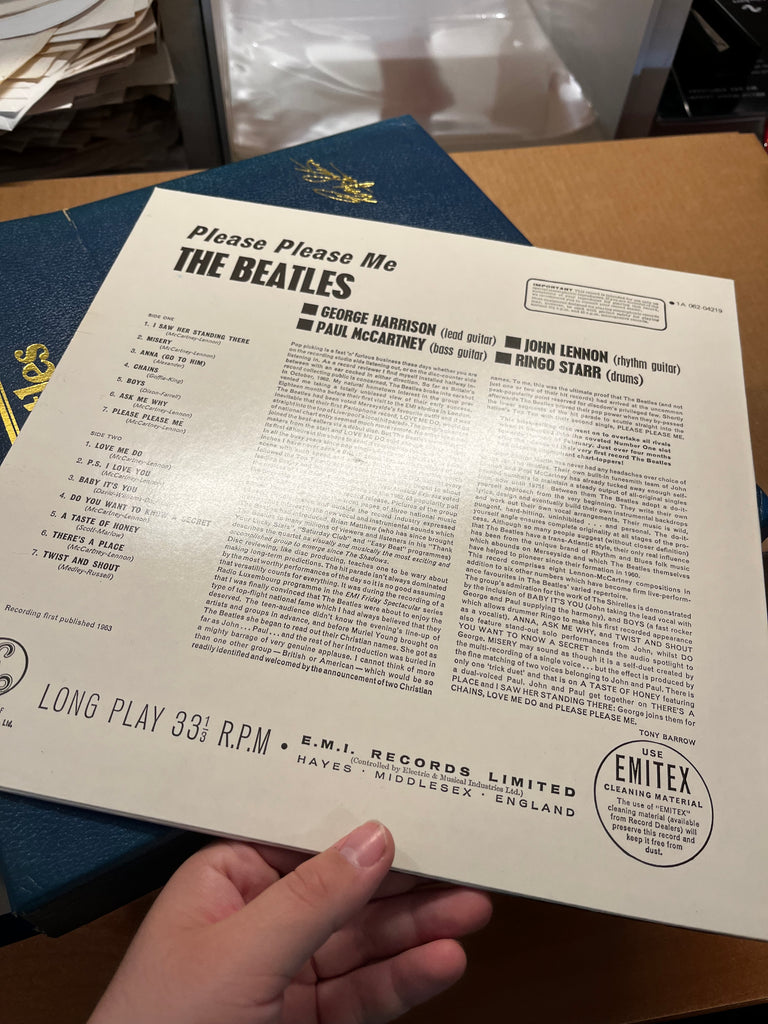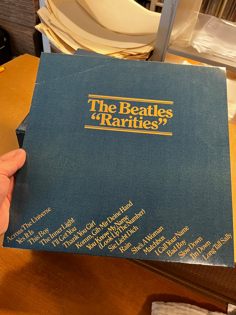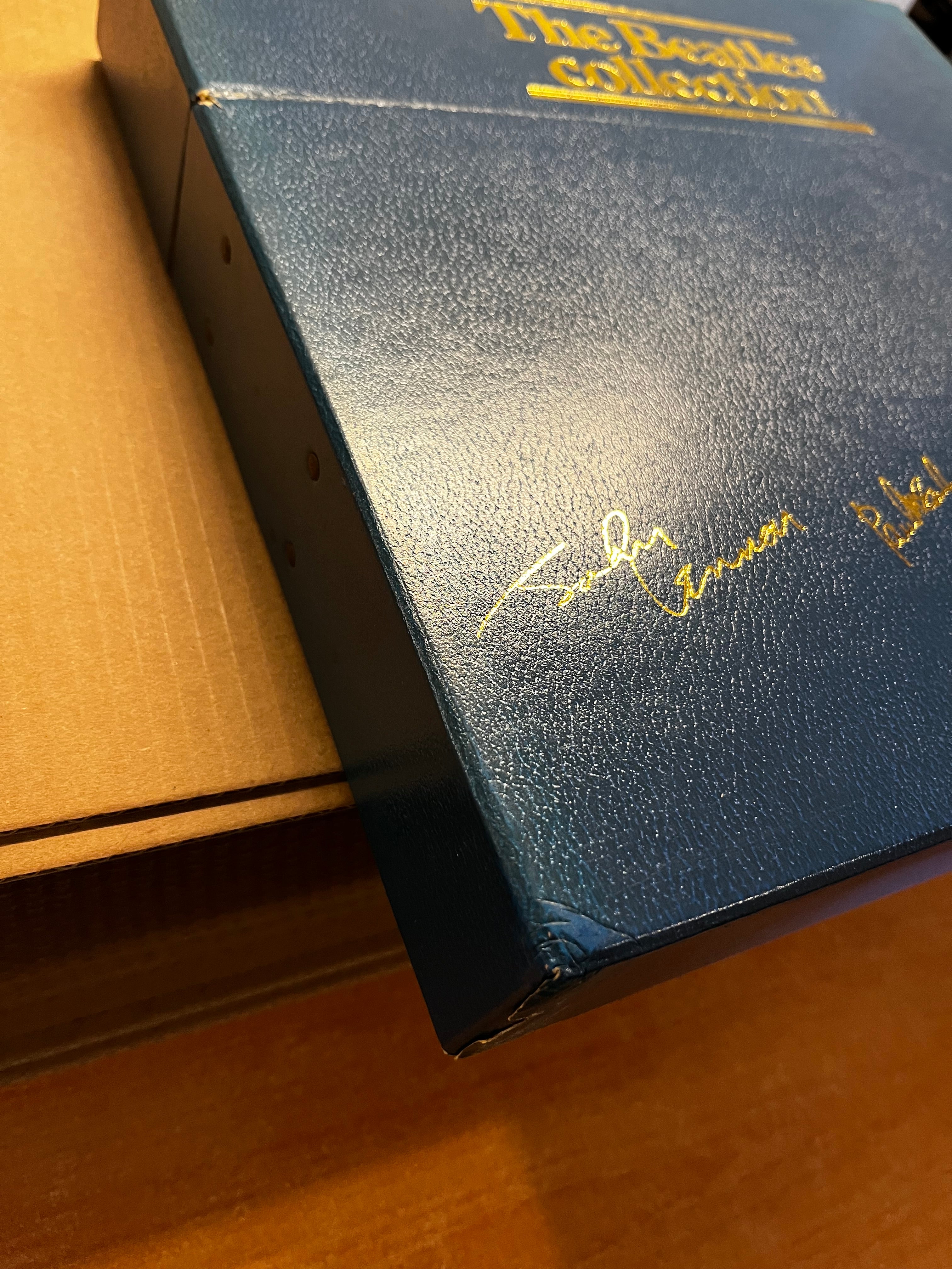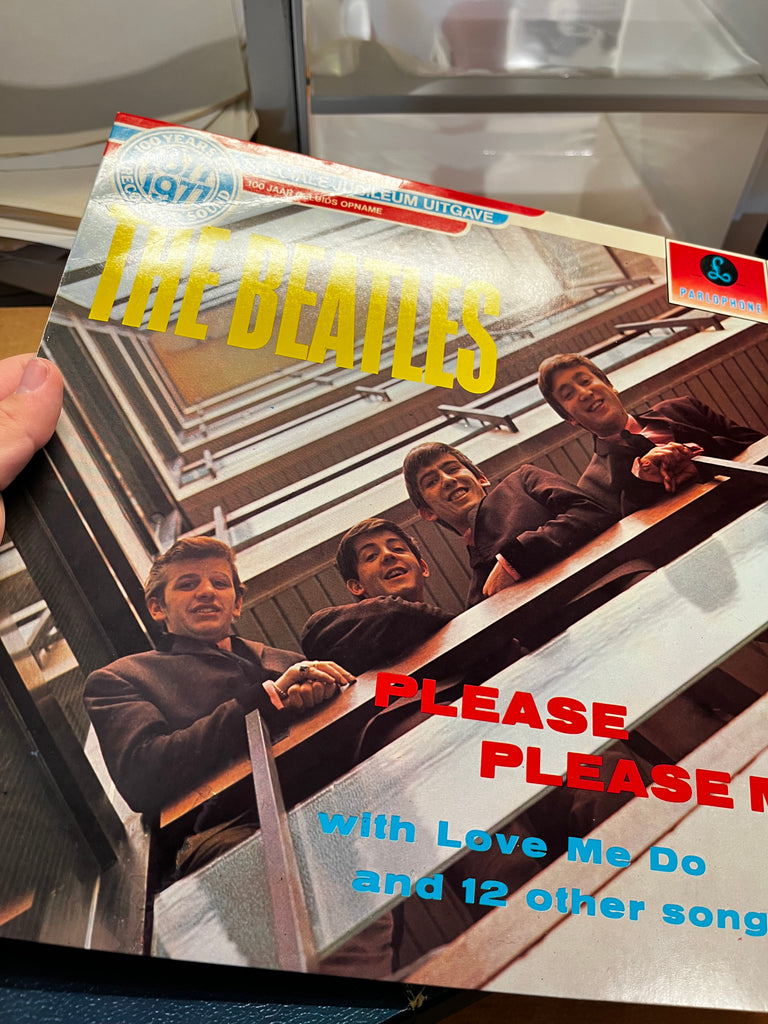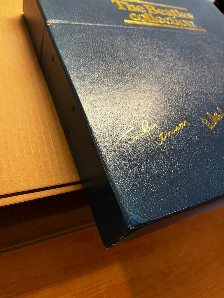 Dutch edition of The Beatles Collection. Comes in a blue imitation leather-cardboard box with golden etched letters containing the 14 original LPs: