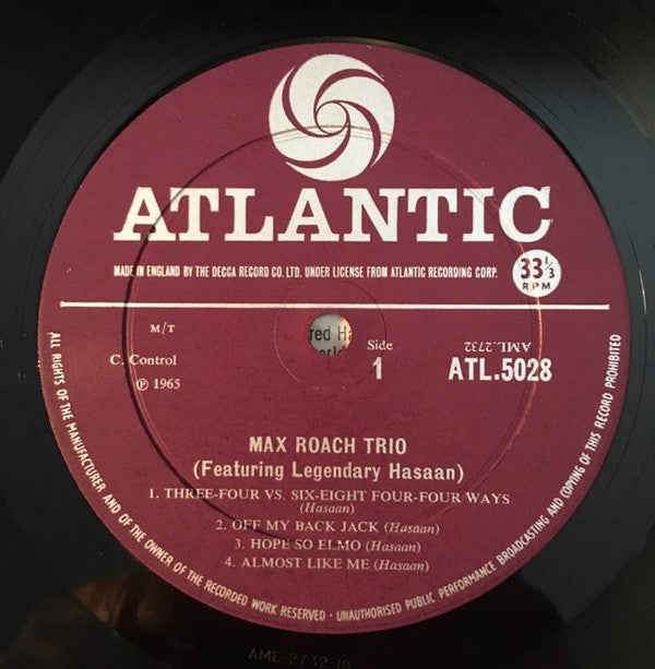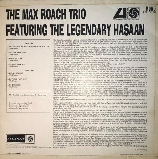 The Max Roach Trio Featuring Hasaan Ibn Ali - The Max Roach Trio Featuring The Legendary Hasaan (LP, Album, Mono)