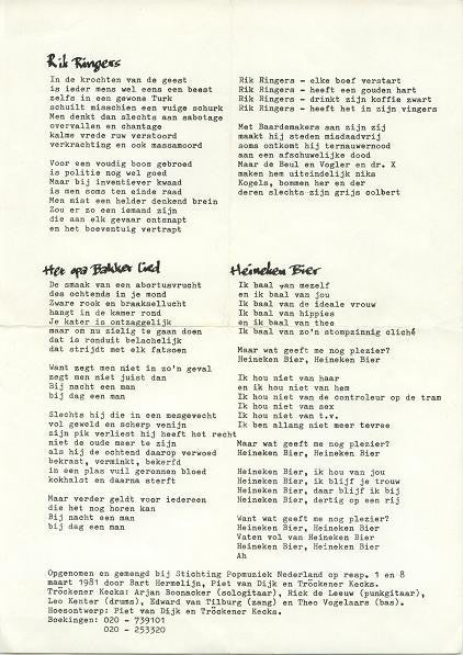 Opgenomen en gemengd bij Stichting Popmuziek Nederland op resp. 1 en 8 maart 1981.