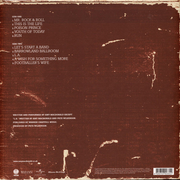 On back cover: Original release ℗ 2007 Melodramatic Records Ltd. This release ℗ & © 2020 Universal Music Made in the EU. Hype sticker reads: Her debut album Includes "Mr. Rock & Roll", "This Is The Life" and more songs Includes insert with lyrics 180 gram audiophile vinyl