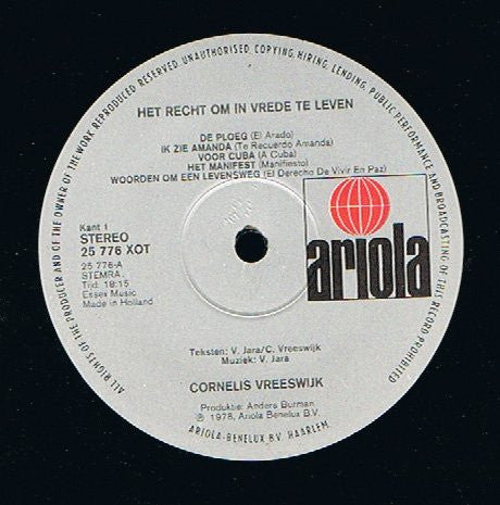 Contains Dutch versions of songs by Victor Jara Recorded in Metronome Studio, July 1977