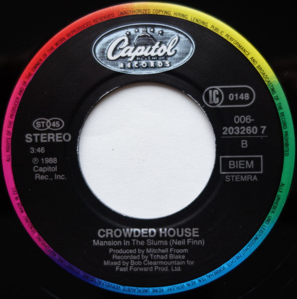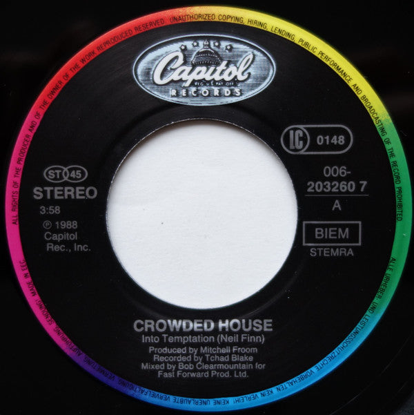 Printed in Holland by EMI Services Benelux BV., Uden. En France: distribution exclusive EMI Pathé Marconi S.A., - Deutschland: EMI Electrola Gmbh Köln © 1988 Capitol Records, Inc. ℗ 1988 Capitol Rec., Inc. from the Album, Cassette, and Compact Disc, "TEMPLE OF LOW MEN" Mixed for Fast Forward Productions, Ltd Runouts are stamped.