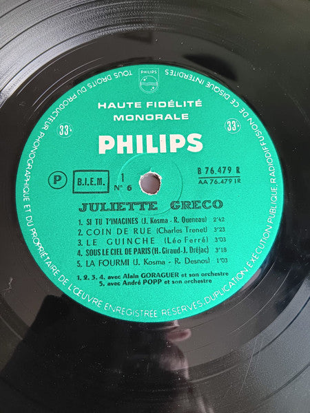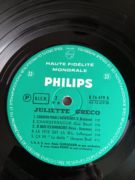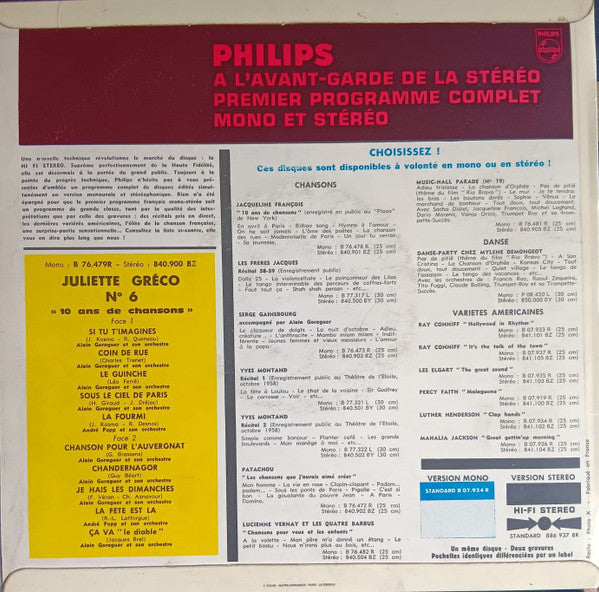 Printed on back cover: Mono : B 76.479 R - Stéréo : 840.900 BZ F. Richir - Maître-Imprimeur - Paris - Le Perreux - 89 Recto : Photo X - Fabriqué en France Printed on label: Minigroove