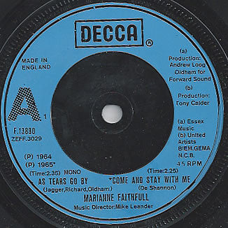 Marianne Faithfull - As Tears Go By (7", EP, RE, Inj)