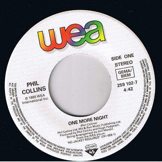 ℗ 1985 WEA International Inc. © 1985 WEA International Inc. Manufactured in Germany by Record Service GmbH, Alsdorf Made in Germany by WEA Musik GmbH Track A From the WEA Album "No Jacket Required" (251 699-1)