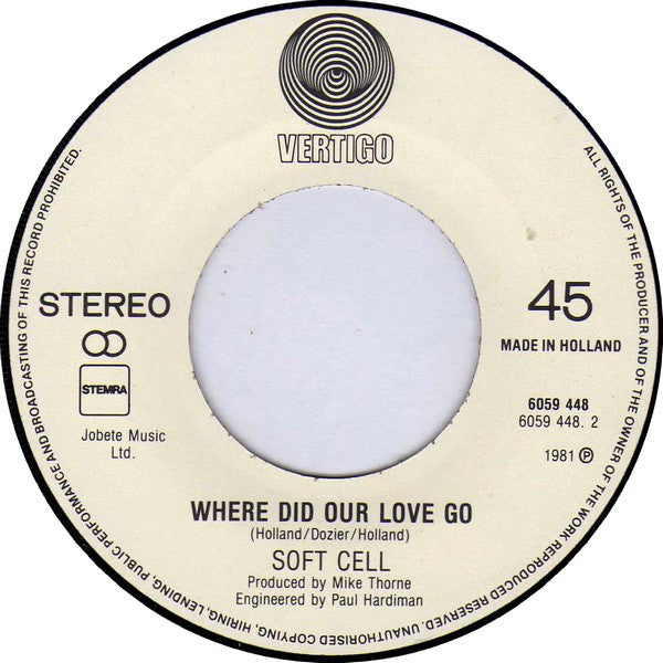 Cover-Version of Gloria Jones – Tainted Love A: Intersong Music/Jobete Music Ltd. B: Jobete Music Ltd. None duration mentioned anywhere on this edition