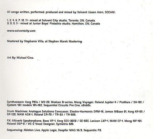 Tracks 1, 2, 4, 6, 7, 10, 11 mixed at Solvent City studio, Toronto, ON, Canada.
