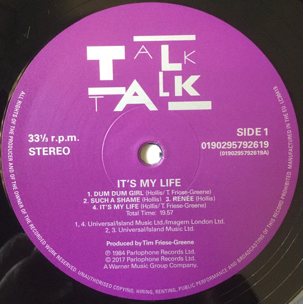 On spine: ● 0190295792619 Talk Talk ● It's My Life ● Parlophone Records Ltd.