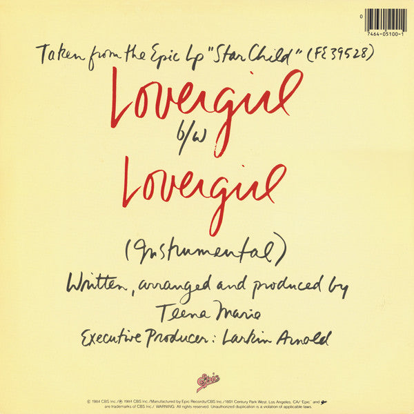 Teena Marie - Lovergirl (Special 12" Dance Mix) (12")
