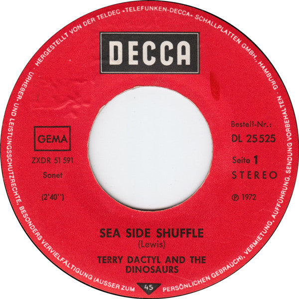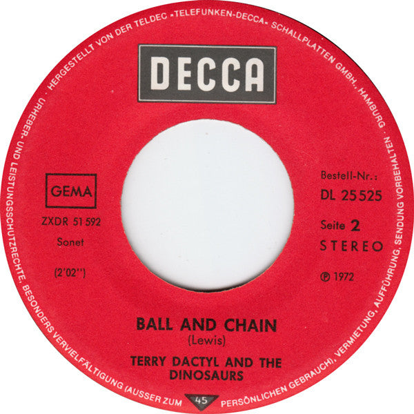Terry Dactyl And The Dinosaurs - Sea Side Shuffle / Ball And Chain (7", Single)