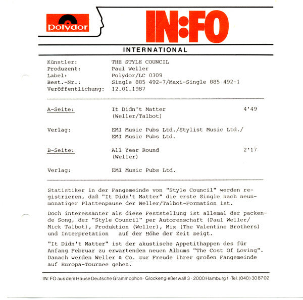 Some copies, mostly send to the media, came with an additional Polydor IN:FO sheet (check image #5).