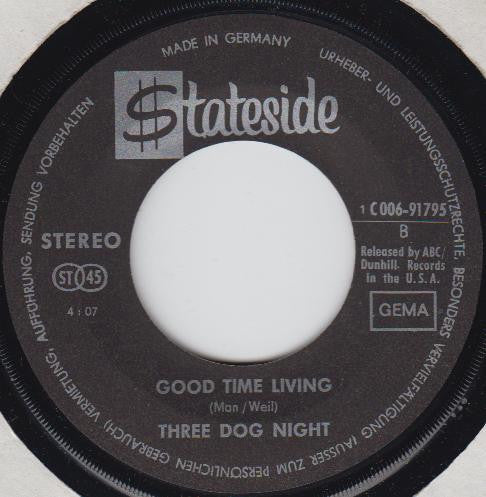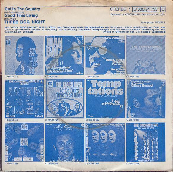 Three Dog Night - Out In The Country / Good Time Living (7", Single)