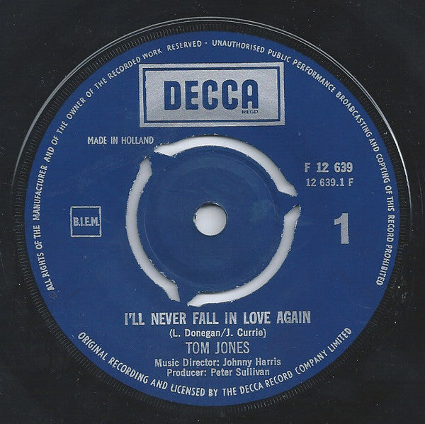Tom Jones - I'll Never Fall In Love Again (7", Single)