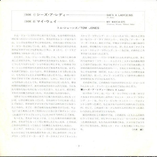 Tom Jones - She's A Lady / My Way (7", Single, Mono)