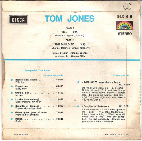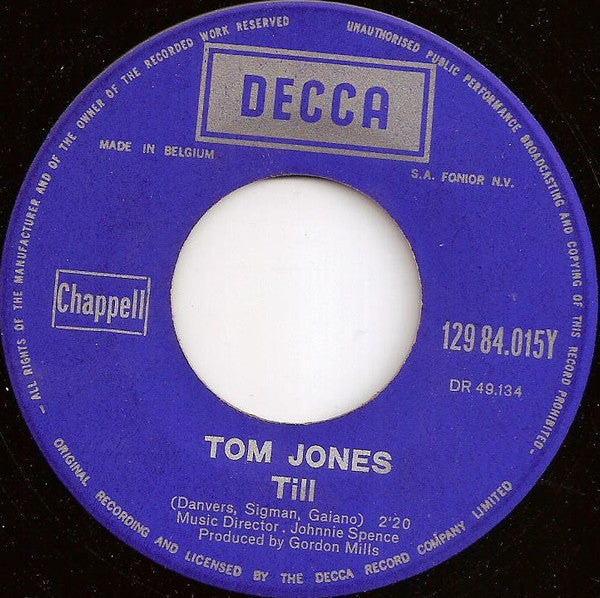 Tom Jones - Till (7", Single, Blu)
