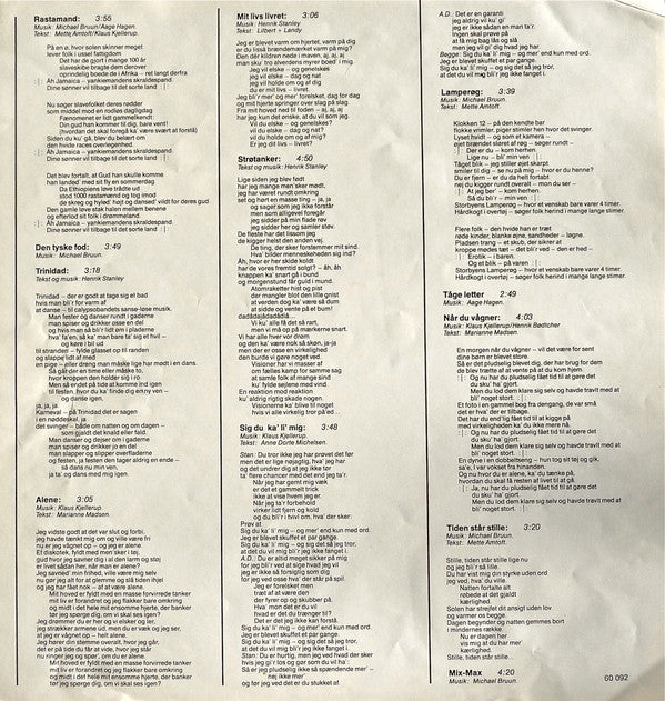 Recorded and mixed in Werner Studios 1980. Issued w. lyrics insert.