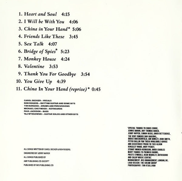 All songs published by AMP Publishing Ltd except track 3, 6, 11 Published by M15 Publishing Ltd.