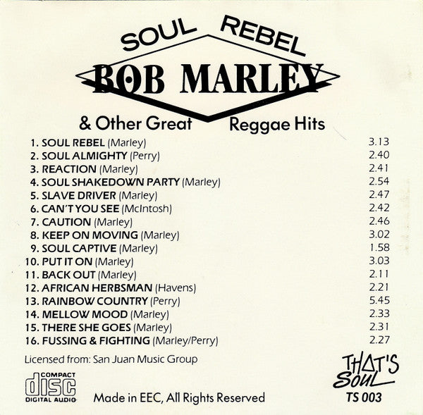 Bob Marley - Soul Rebel & Other Great Reggae Hits (CD, Comp)