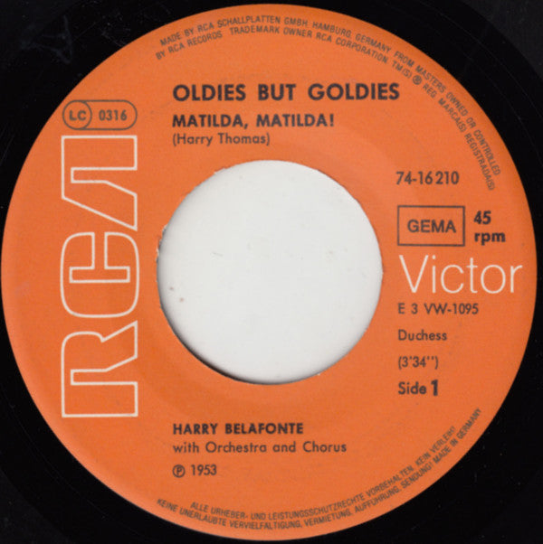 Harry Belafonte - Matilda / Island In The Sun (7", Single, RE)