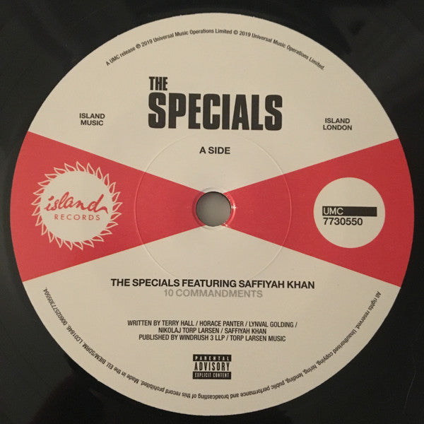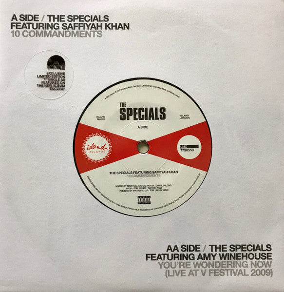 Record Store Day 2019 Following up their first studio album in 37 years, The Specials will release a double A side 7" for Record Store Day featuring "10 Commandments" featuing Saffiyah Khan and a live version of "You're Wondering Now" featuring Amy Winehouse from the 2009 V Festival. Made in the EU