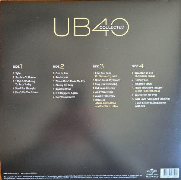 180 gram audiophile vinyl Gatefold sleeve High quality PVC protective sleeve 4 page booklet with liner notes and photos A careful selection of hits and tracks, including "Tyler", "One In Ten", "Cherry Oh Baby", "Red Red Wine", "I Got You Babe" featuring Chrissie Hynde and "Rat In Mi Kitchen"