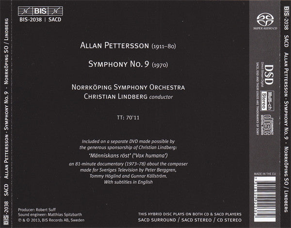 Allan Pettersson, Norrköping Symphony Orchestra, Christian Lindberg - Symphony No. 9 (SACD, Hybrid, Multichannel, Album + DVD-V)