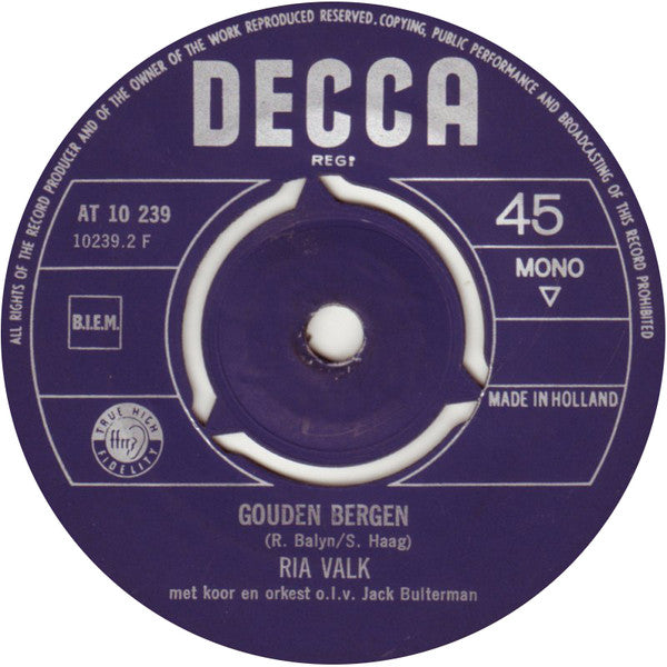 B. Ria Valk, Koor o.l.v. Jack Bulterman, Orkest o.l.v. Jack Bulterman - Gouden Bergen